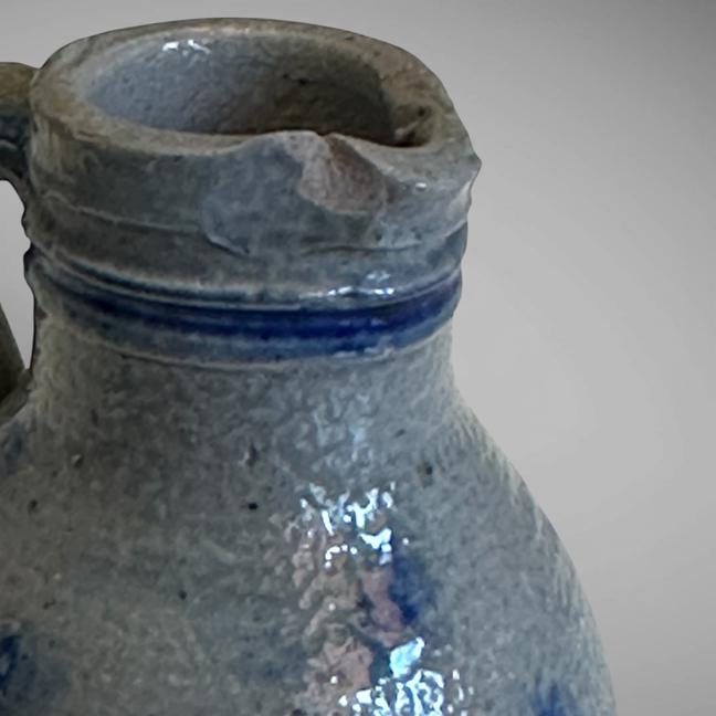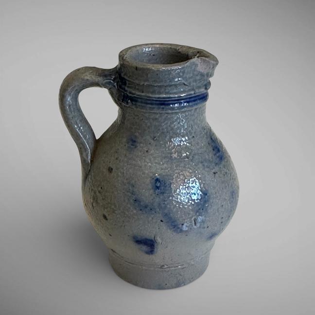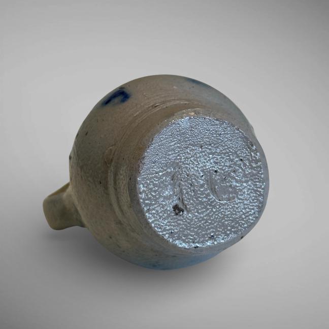 This tiny little stoneware pitcher is decorated in a cobalt blue. Pennsylvania-German.